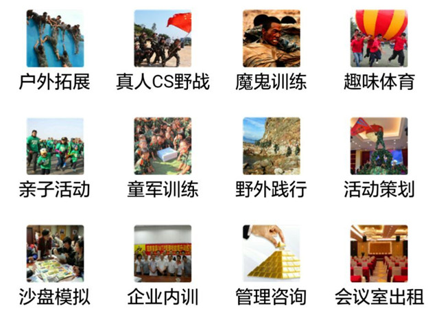 經(jīng)典拓展 組織運動 趣味團建 水上團建 工匠/藝術(shù) 戶外領(lǐng)導(dǎo)力 沙盤/科技 黨性文化 企業(yè)內(nèi)訓(xùn)+創(chuàng)意團建